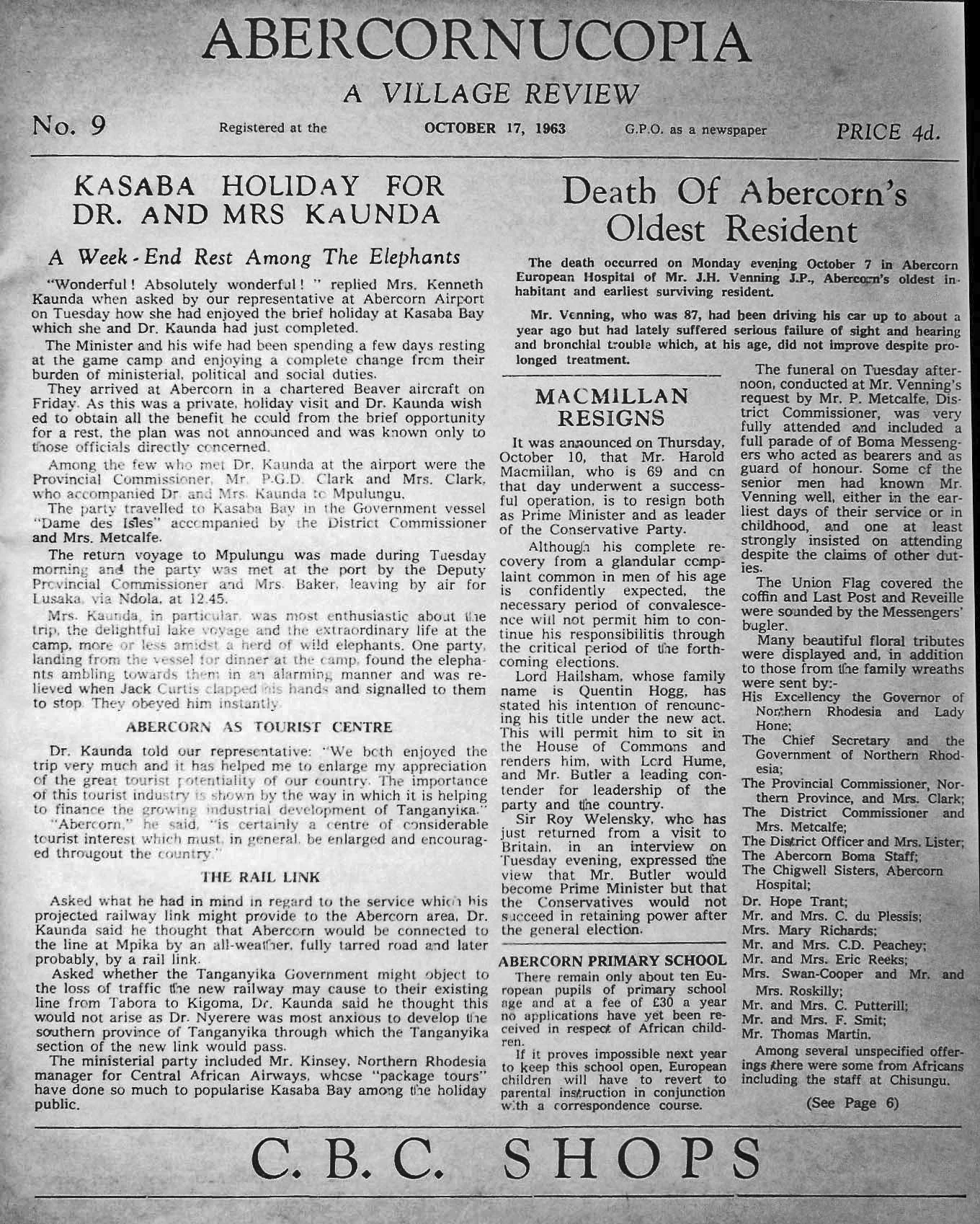 Dr and Mrs Kaunda holiday at Kasaba Bay